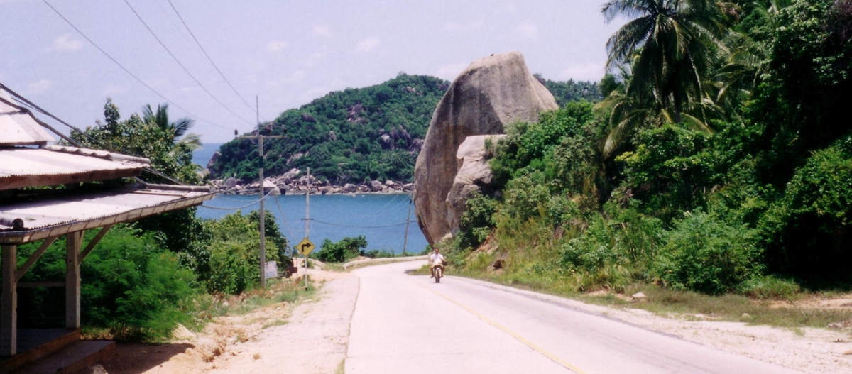 From Ban Sapan I drove to Ko-Samui, a famous Island in the gulf of Thailand, where I stayed also about 3 weeks. Beach fire, guitars, barbecue, and small bungalow directly on the beach, boot-trips in the marine-park and to Ko-Phangan famous for the full moon party's. A lot of backpack-tourists, waterfalls in the dschungle and a lot more. At Ko-Samui I made a lot of tours by feed in the dschungle and when I was bored of beach and to do nothing I was on the way to Had Yai and to Malaysia down the road No.4.