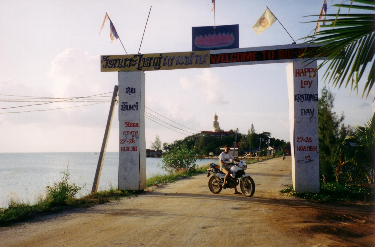 From Chiang-Mai I drove to Mae-Hong-Song and back and over Pitsanalok, Uhtai Thani, Lop Buri to Bangkok and from there over Hua Hin to Ban-Sapan a small village near Chumphon. I read in the Bangkok-Post that in Ban-Sapan is one of the longest beaches in Thailand, so I liked to take a look at this and it was really amassing. A small fisher-village with a few bungalow resorts on one side the beach and the other side the mountain, the border to Burma. A big Buddha on a mountain, gold-fields, caves and a really pretty large beach without any tourists.