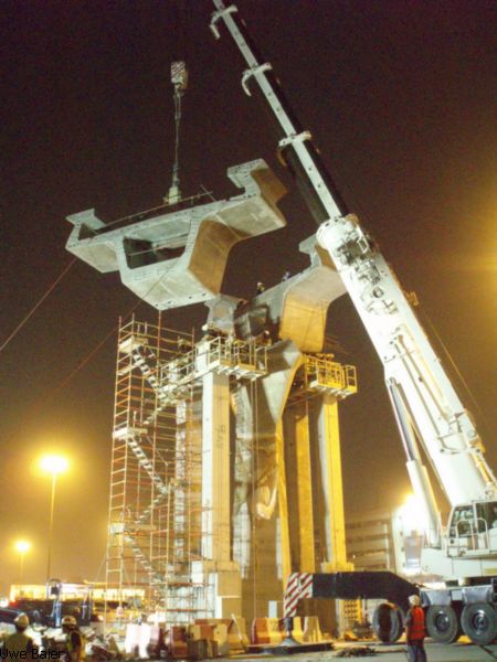 ...Since 1997 I am working as a ‘Launching Girder Operator’. First for ‘Bilfinger & Berger International’ in Bangkok (Thailand) on the ‘Bang Na - Bang Pakon Expressway Project’ where I assembled, erected and operated ‘Launching Gantries’ and was responsible for the erecting and placing of the segments for Spans up to 1300 tons and 43.20m long, stressing of the spans, installing and grouting bearings and supervising heavy crane lifts.